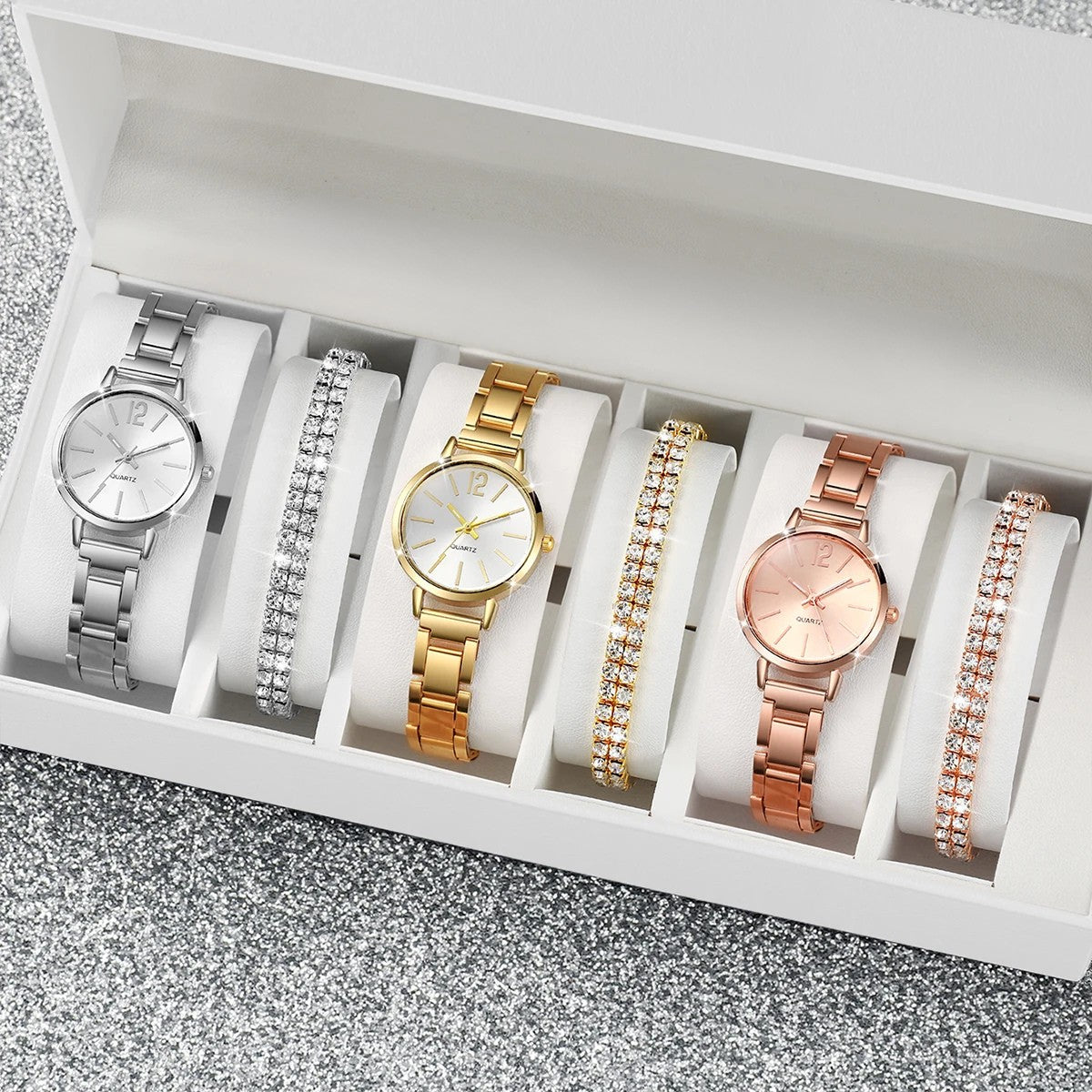 Coffret de 6 Bijoux : 3 Montres et 3 Bracelets – Pour un Style Inoubliable